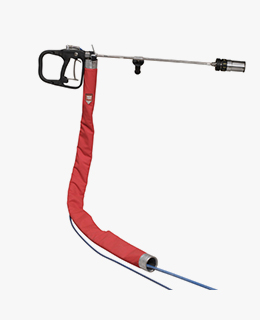 高压管保护套介绍:高压管和联轴器都是非常靠近人体重要部位(如腹部、脖颈、腋下等)的组件,如果发生断裂和损坏,将会对作业人员带来非常严重的危险。高压管保护套能够有效的保护作业人员的安全。高压管保护套装在高压管和清洗枪的连接部位。在高压管较接近清洗枪的位置,安装了一个250毫米的钢环,即使在3000 bar或者43500 psi的压力下,也能够保护作业人员的安全。通过绑带,可以将保护套紧紧的绑在清洗枪上。高压管保护套的表面是光滑、有弹性的。